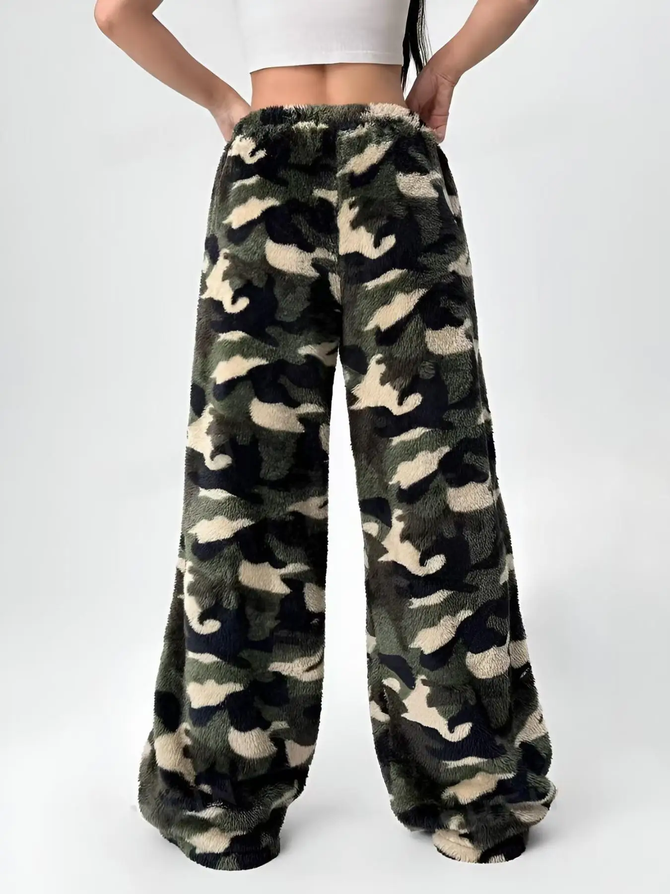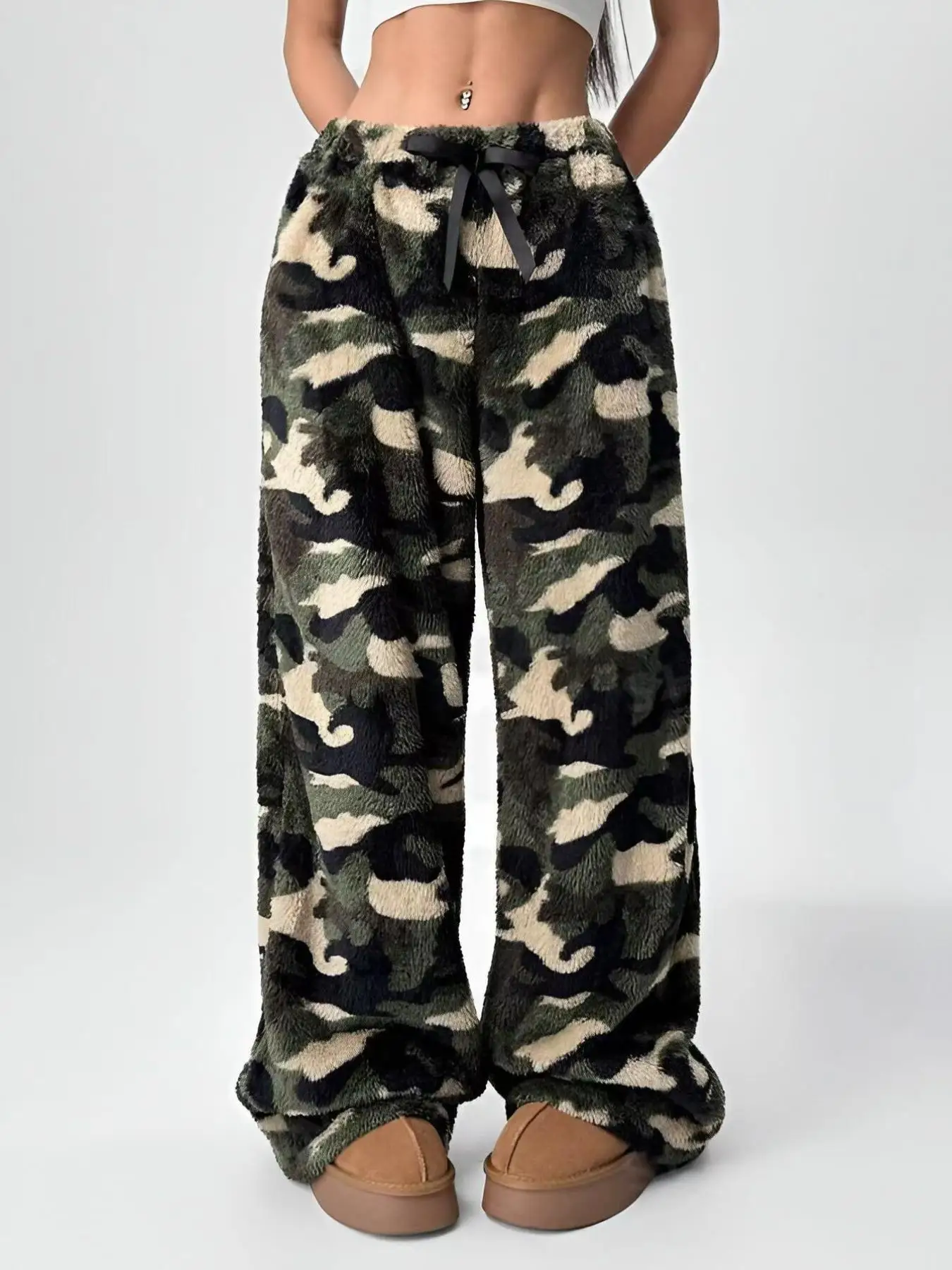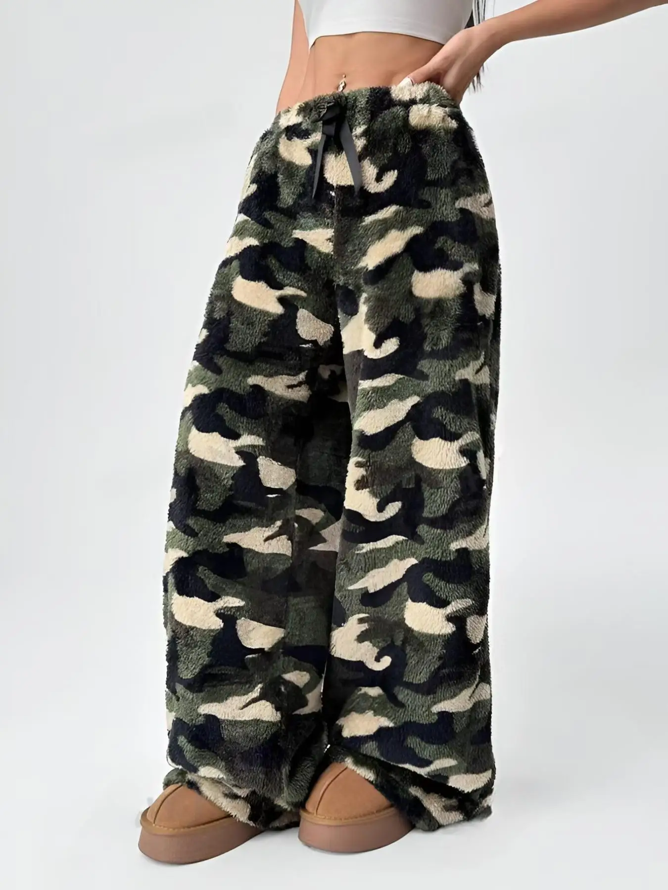 Comfortable camo-print lounge pants made for everyday unwinding. The relaxed fit and soft, fleece-style fabric make them ideal for lounging, chilling, or winding down after a long day.