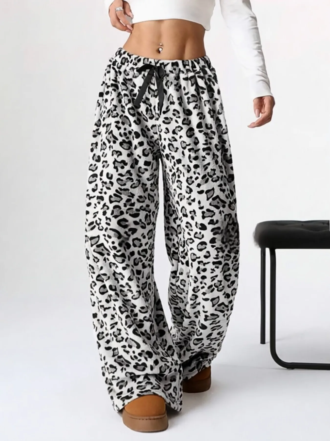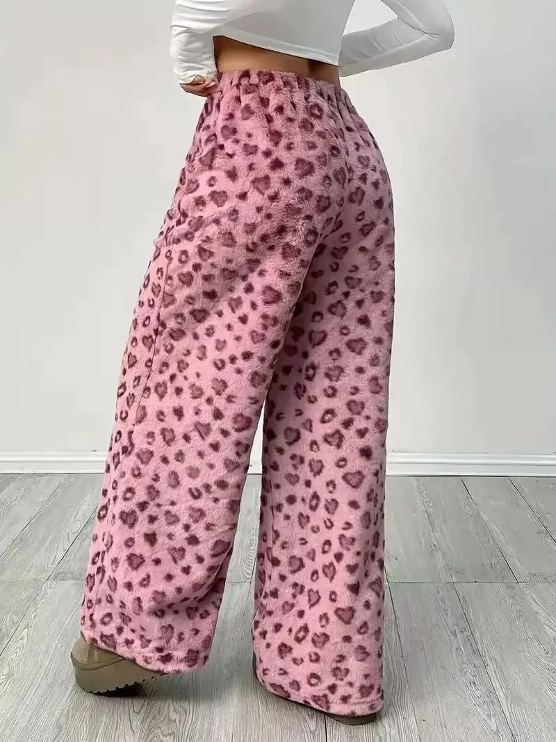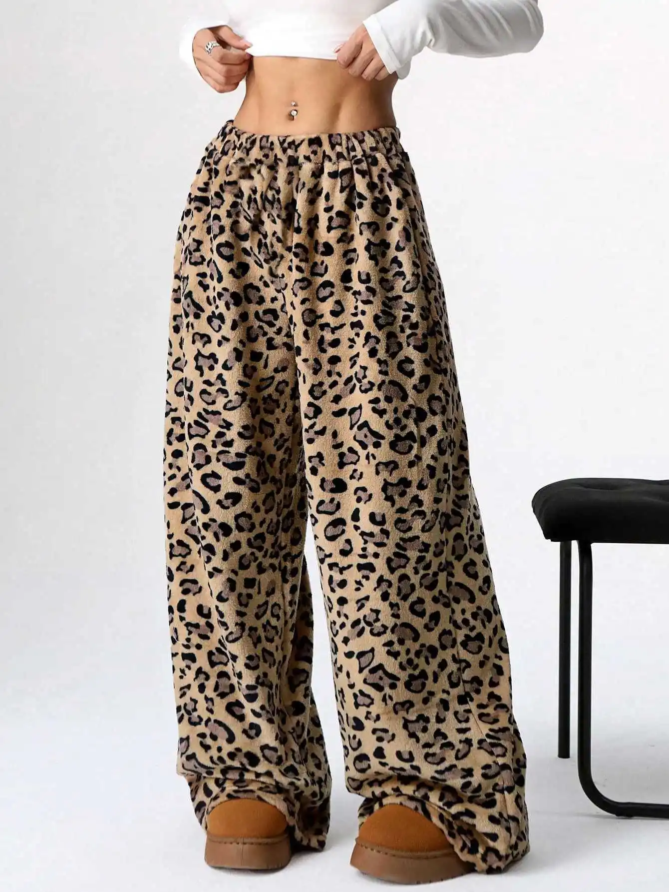 Soft, cozy lounge pants with a relaxed fit and a bold leopard print. Designed for comfort during slow evenings, lounging, and unwinding at home. Made from a soft, fleece-style fabric that feels warm and comfortable against the skin.